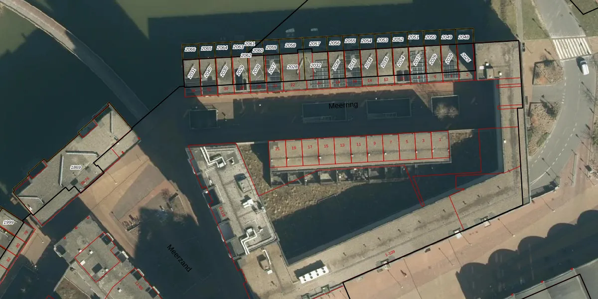 Het perceel waarop Meerring 19 staat heeft een oppervlakte van 2,5 ha. Dit is een zeer groot perceel. De perceeloppervlakte wordt geregistreerd door het Kadaster. Gedetailleerde informatie over de maten van dit perceel kunt u vinden in het rapport Kadastrale kaart met maatvoering van Meerring 19.