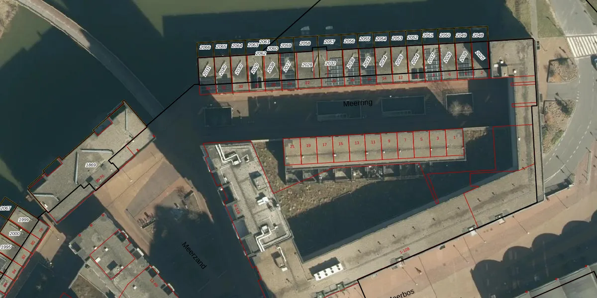 Het perceel waarop Meerring 21 staat heeft een oppervlakte van 2,5 ha. Dit is een zeer groot perceel. De perceeloppervlakte wordt geregistreerd door het Kadaster. Gedetailleerde informatie over de maten van dit perceel kunt u vinden in het rapport Kadastrale kaart met maatvoering van Meerring 21.