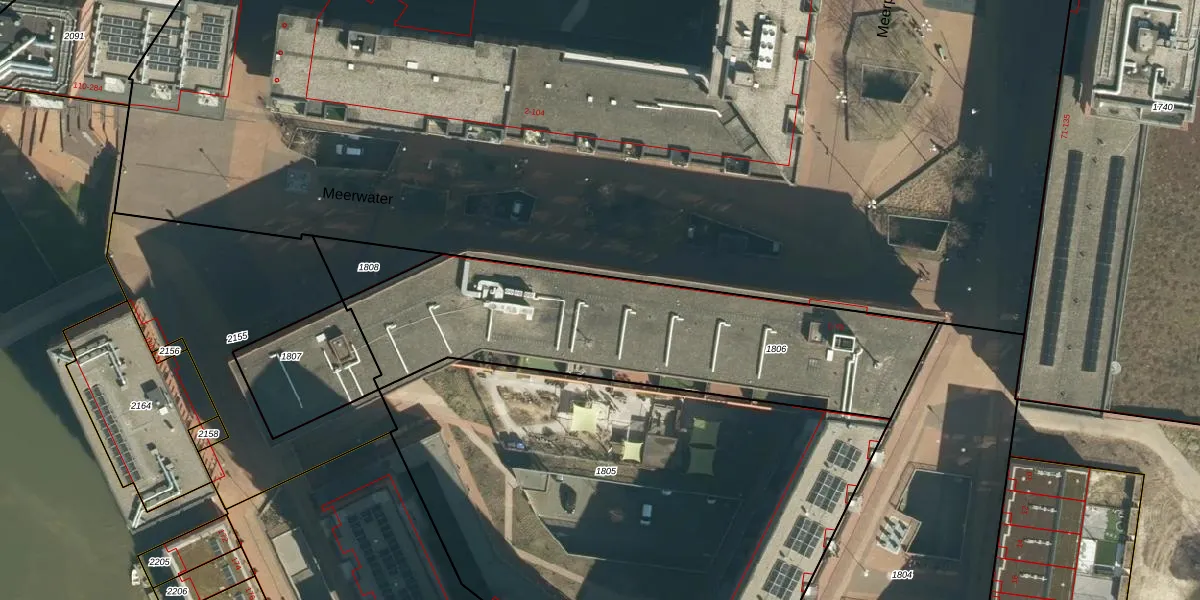 Meerwater 65 is gelegen op kadastraal perceel STR03F1806. Deze kadastrale aanduiding is uniek en wordt gebruikt door het Kadaster om eigendomsrechten en andere zakelijke rechten vast te leggen. Het perceel maakt onderdeel uit van de kadastrale gemeente Strijp.