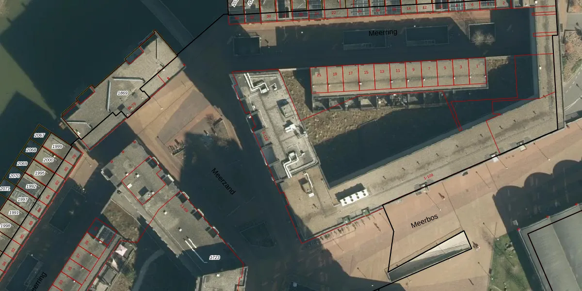 Het perceel waarop Meerzand 10 staat heeft een oppervlakte van 2,5 ha. Dit is een zeer groot perceel. De perceeloppervlakte wordt geregistreerd door het Kadaster. Gedetailleerde informatie over de maten van dit perceel kunt u vinden in het rapport Kadastrale kaart met maatvoering van Meerzand 10.