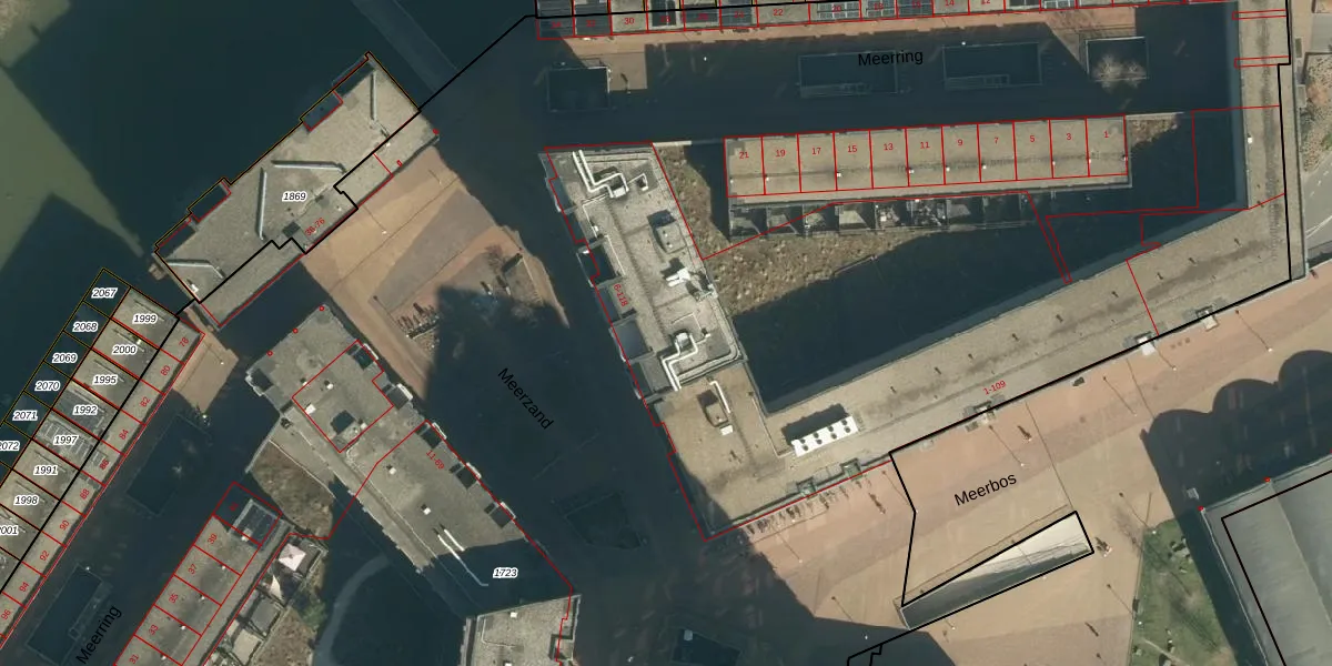 Het perceel waarop Meerzand 6 staat heeft een oppervlakte van 2,5 ha. Dit is een zeer groot perceel. De perceeloppervlakte wordt geregistreerd door het Kadaster. Gedetailleerde informatie over de maten van dit perceel kunt u vinden in het rapport Kadastrale kaart met maatvoering van Meerzand 6.