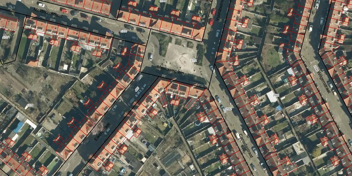 Het perceel waarop Meidoornplein 10 staat heeft een oppervlakte van 8927 m². Dit is een zeer groot perceel. De perceeloppervlakte wordt geregistreerd door het Kadaster. Gedetailleerde informatie over de maten van dit perceel kunt u vinden in het rapport Kadastrale kaart met maatvoering van Meidoornplein 10.