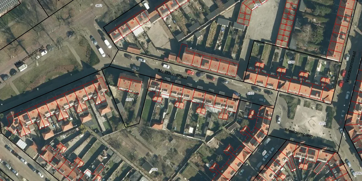 Meidoornstraat 10 is gelegen op kadastraal perceel STR03C1778. Deze kadastrale aanduiding is uniek en wordt gebruikt door het Kadaster om eigendomsrechten en andere zakelijke rechten vast te leggen. Het perceel maakt onderdeel uit van de kadastrale gemeente Strijp.
