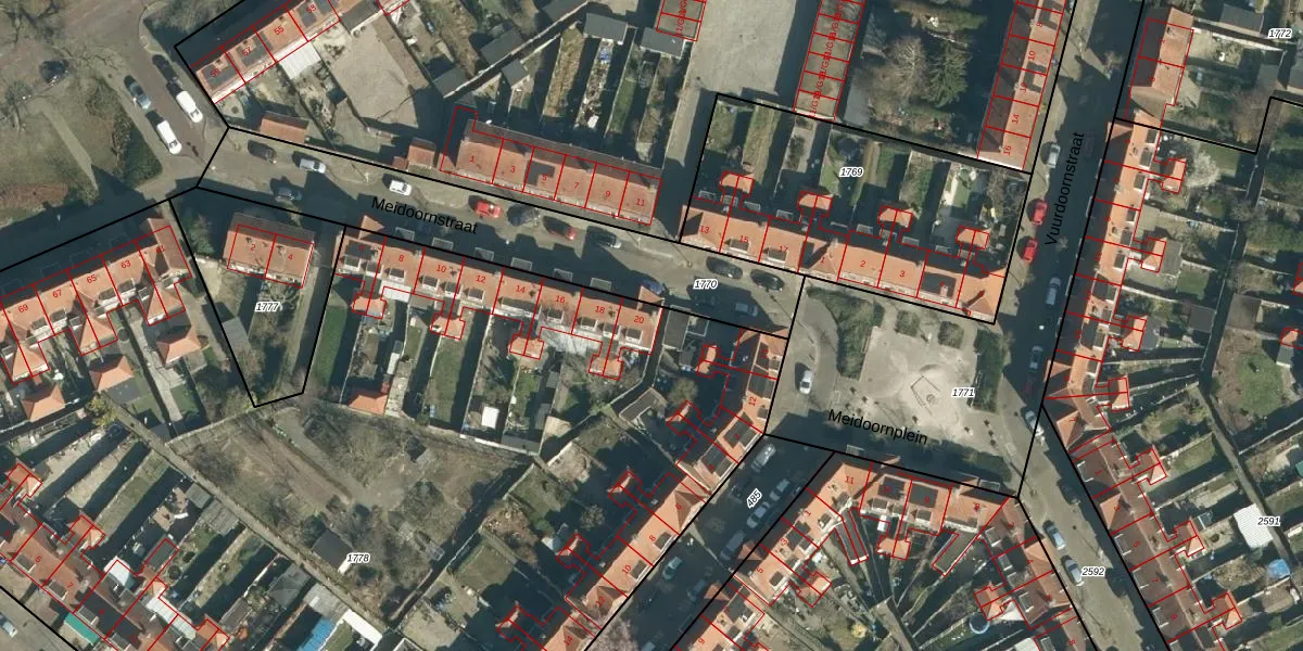Meidoornstraat 20 is gelegen op kadastraal perceel STR03C1778. Deze kadastrale aanduiding is uniek en wordt gebruikt door het Kadaster om eigendomsrechten en andere zakelijke rechten vast te leggen. Het perceel maakt onderdeel uit van de kadastrale gemeente Strijp.