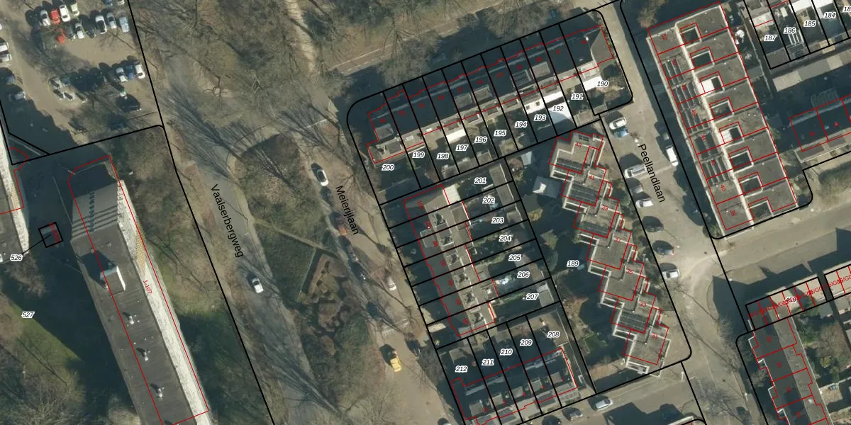 Het perceel waarop Meierijlaan 102 staat heeft een oppervlakte van 183 m². Dit is een middelgroot perceel. De perceeloppervlakte wordt geregistreerd door het Kadaster. Gedetailleerde informatie over de maten van dit perceel kunt u vinden in het rapport Kadastrale kaart met maatvoering van Meierijlaan 102.