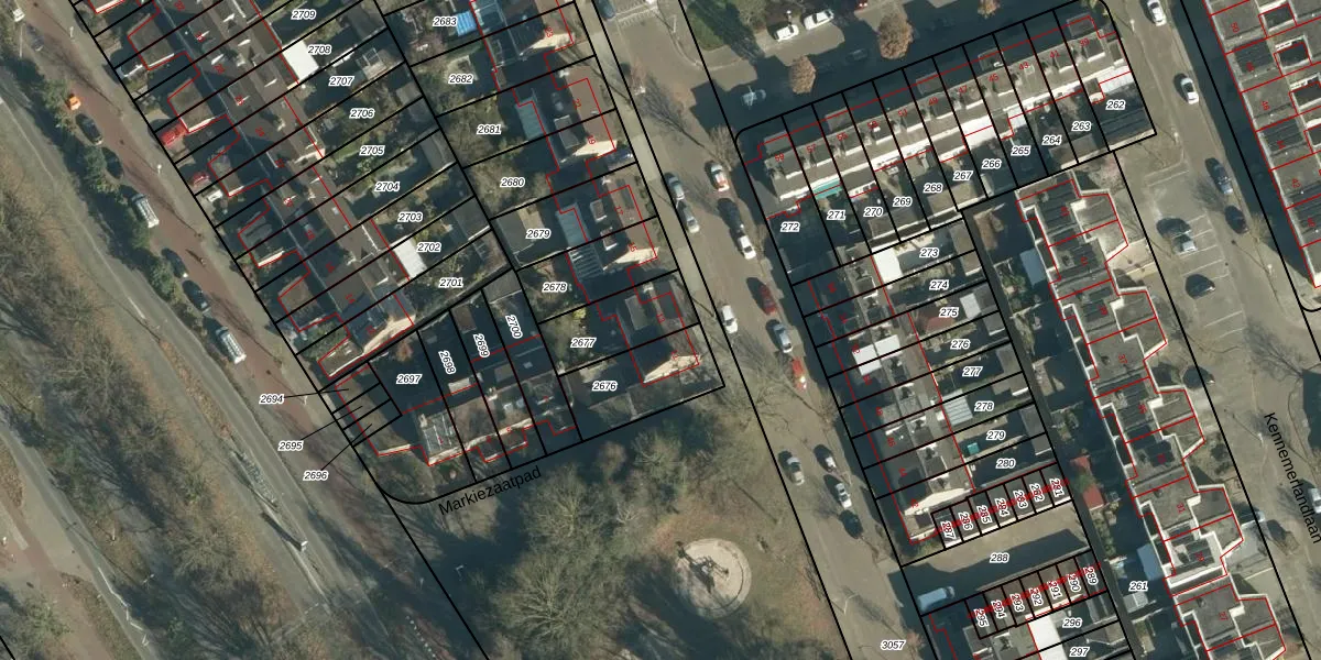 Gebruik de zoekbalk of klik op een perceel voor informatie over de adressen binnen dit perceel.