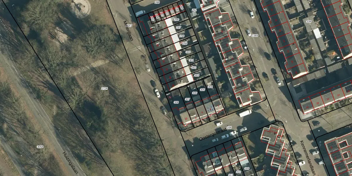 Gebruik de zoekbalk of klik op een perceel voor informatie over de adressen binnen dit perceel.