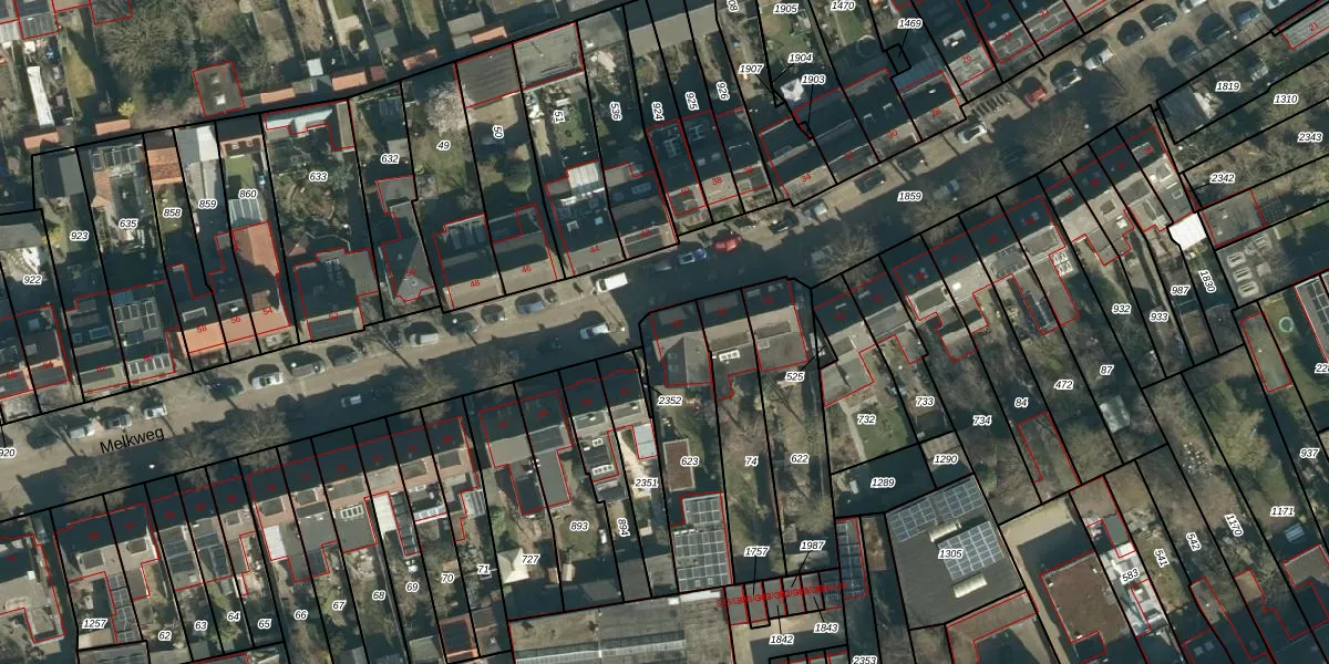 Het perceel waarop Melkweg 59 staat heeft een oppervlakte van 395 m². Dit is een groot perceel. De perceeloppervlakte wordt geregistreerd door het Kadaster. Gedetailleerde informatie over de maten van dit perceel kunt u vinden in het rapport Kadastrale kaart met maatvoering van Melkweg 59.