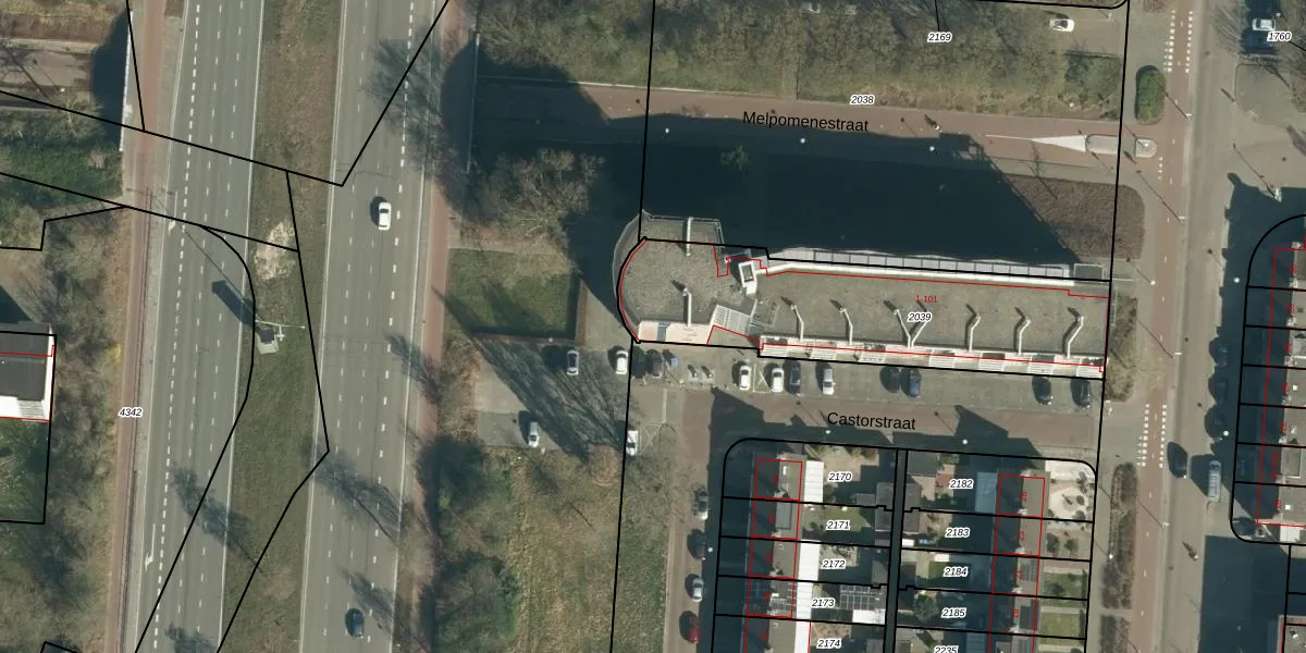 Melpomenestraat 101 is gelegen op kadastraal perceel WSL01K2039. Deze kadastrale aanduiding is uniek en wordt gebruikt door het Kadaster om eigendomsrechten en andere zakelijke rechten vast te leggen. Het perceel maakt onderdeel uit van de kadastrale gemeente Woensel.