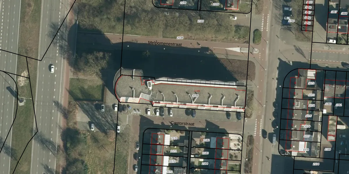Het perceel waarop Melpomenestraat 13 staat heeft een oppervlakte van 1128 m². Dit is een zeer groot perceel. De perceeloppervlakte wordt geregistreerd door het Kadaster. Gedetailleerde informatie over de maten van dit perceel kunt u vinden in het rapport Kadastrale kaart met maatvoering van Melpomenestraat 13.