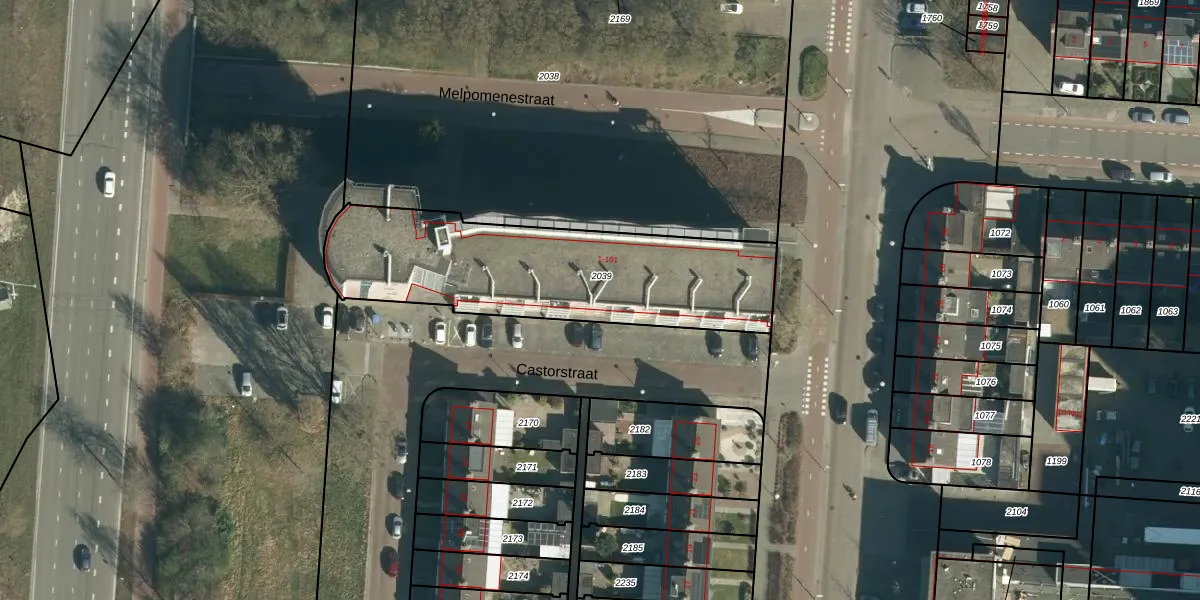 Het perceel waarop Melpomenestraat 81 staat heeft een oppervlakte van 1128 m². Dit is een zeer groot perceel. De perceeloppervlakte wordt geregistreerd door het Kadaster. Gedetailleerde informatie over de maten van dit perceel kunt u vinden in het rapport Kadastrale kaart met maatvoering van Melpomenestraat 81.