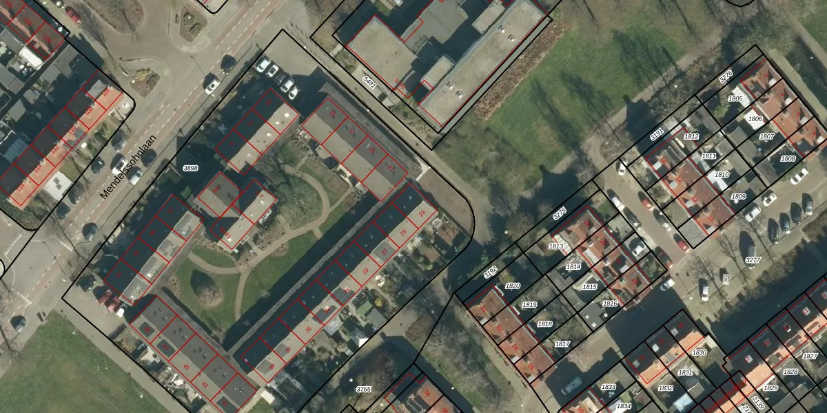 Het perceel waarop Mendelssohnlaan 23 staat heeft een oppervlakte van 5380 m². Dit is een zeer groot perceel. De perceeloppervlakte wordt geregistreerd door het Kadaster. Gedetailleerde informatie over de maten van dit perceel kunt u vinden in het rapport Kadastrale kaart met maatvoering van Mendelssohnlaan 23.