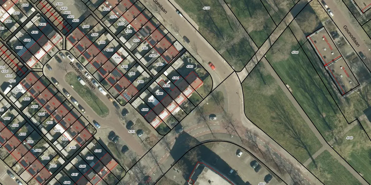 Mendelssohnlaan 4 is gelegen op kadastraal perceel GTL01D4384. Deze kadastrale aanduiding is uniek en wordt gebruikt door het Kadaster om eigendomsrechten en andere zakelijke rechten vast te leggen. Het perceel maakt onderdeel uit van de kadastrale gemeente Gestel.