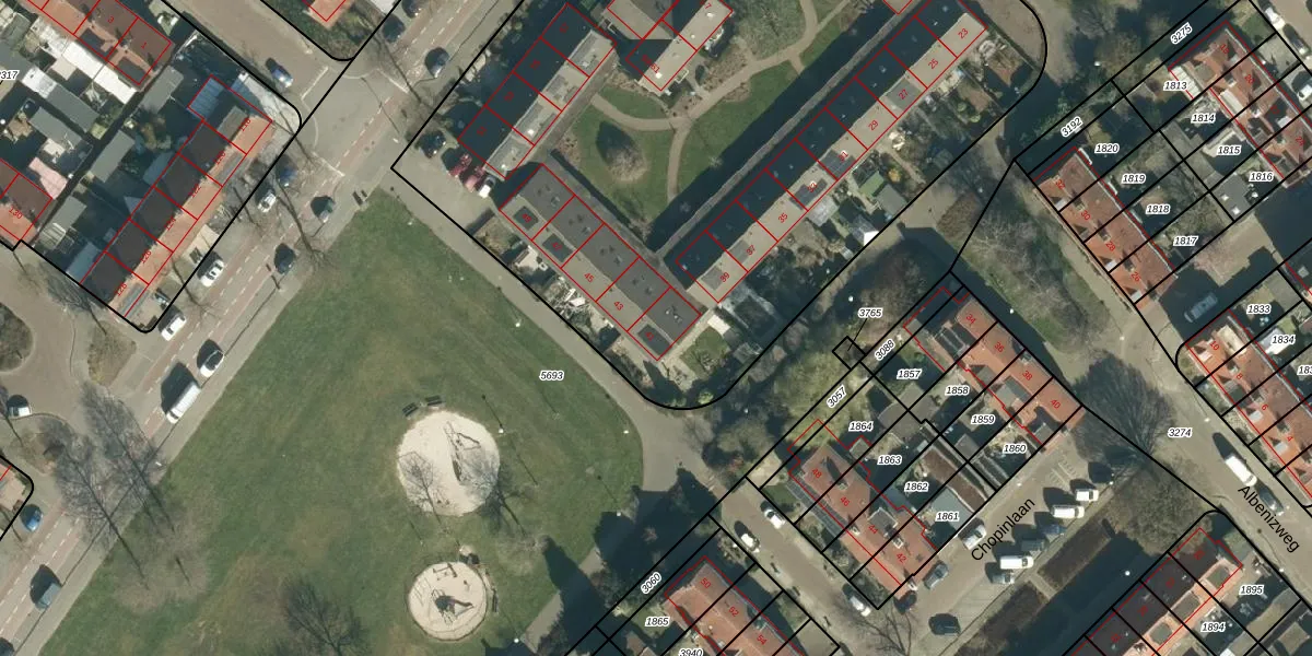 Het perceel waarop Mendelssohnlaan 41 staat heeft een oppervlakte van 5380 m². Dit is een zeer groot perceel. De perceeloppervlakte wordt geregistreerd door het Kadaster. Gedetailleerde informatie over de maten van dit perceel kunt u vinden in het rapport Kadastrale kaart met maatvoering van Mendelssohnlaan 41.