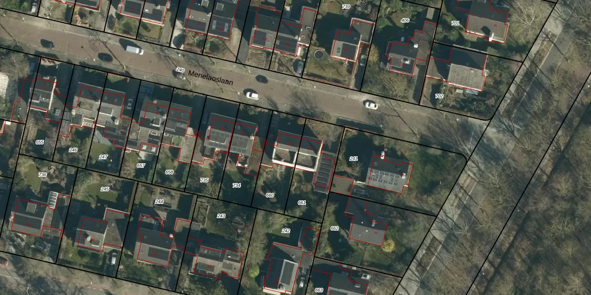 Menelaoslaan 16 is gelegen op kadastraal perceel WSL01N660. Deze kadastrale aanduiding is uniek en wordt gebruikt door het Kadaster om eigendomsrechten en andere zakelijke rechten vast te leggen. Het perceel maakt onderdeel uit van de kadastrale gemeente Woensel.