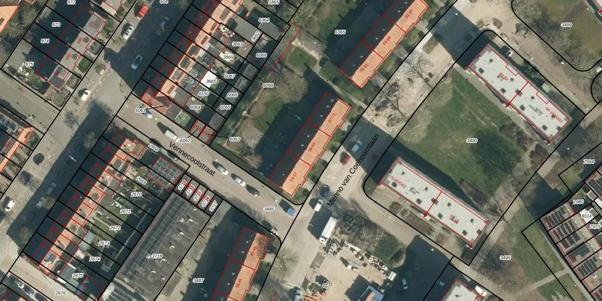 Het perceel waarop Menno van Coehoornlaan 59 staat heeft een oppervlakte van 4317 m². Dit is een zeer groot perceel. De perceeloppervlakte wordt geregistreerd door het Kadaster. Gedetailleerde informatie over de maten van dit perceel kunt u vinden in het rapport Kadastrale kaart met maatvoering van Menno van Coehoornlaan 59.