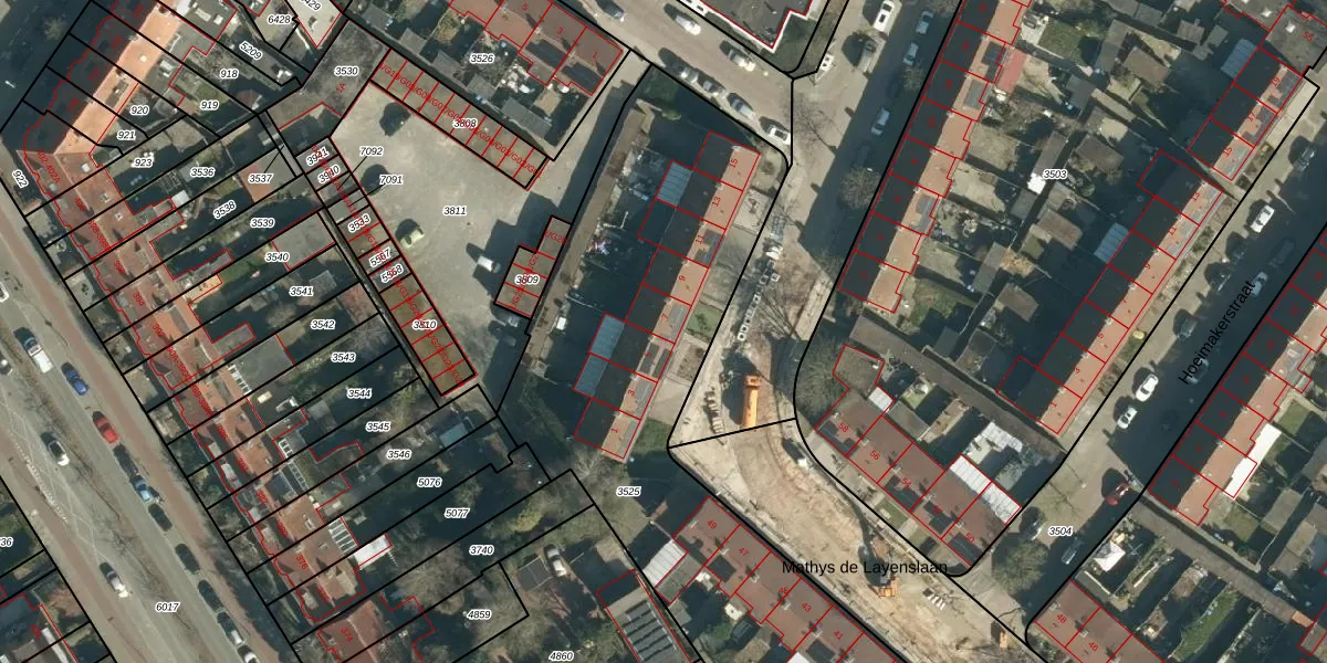 Het adres is gelegen op perceel 3525 in de sectie G en de kadastrale gemeente Woensel. De kadastrale aanduiding is aldus WSL01-G-3525. De oppervlakte van het perceel is 3341 m². Dat is groter dan gemiddeld in Woensel, waar de gemiddelde perceeloppervlakte op 1038,24 m² ligt. Het grootste perceel in de kadastrale gemeente is 74,9 ha. Het kleinste perceel heeft een oppervlakte van 0 m². Op het perceel zijn 18 adressen aanwezig. De huidige grenzen van het perceel zijn digitaal in de Basisregistratie Kadaster (BRK) geregistreerd op 21-05-2019.