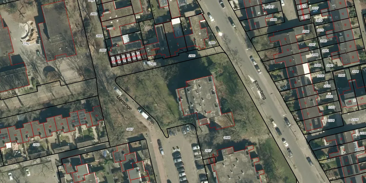 Het perceel waarop Mensinge 63 staat heeft een oppervlakte van 4295 m². Dit is een zeer groot perceel. De perceeloppervlakte wordt geregistreerd door het Kadaster. Gedetailleerde informatie over de maten van dit perceel kunt u vinden in het rapport Kadastrale kaart met maatvoering van Mensinge 63.