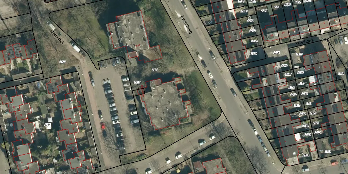 Het perceel waarop Mensinge 69 staat heeft een oppervlakte van 4295 m². Dit is een zeer groot perceel. De perceeloppervlakte wordt geregistreerd door het Kadaster. Gedetailleerde informatie over de maten van dit perceel kunt u vinden in het rapport Kadastrale kaart met maatvoering van Mensinge 69.