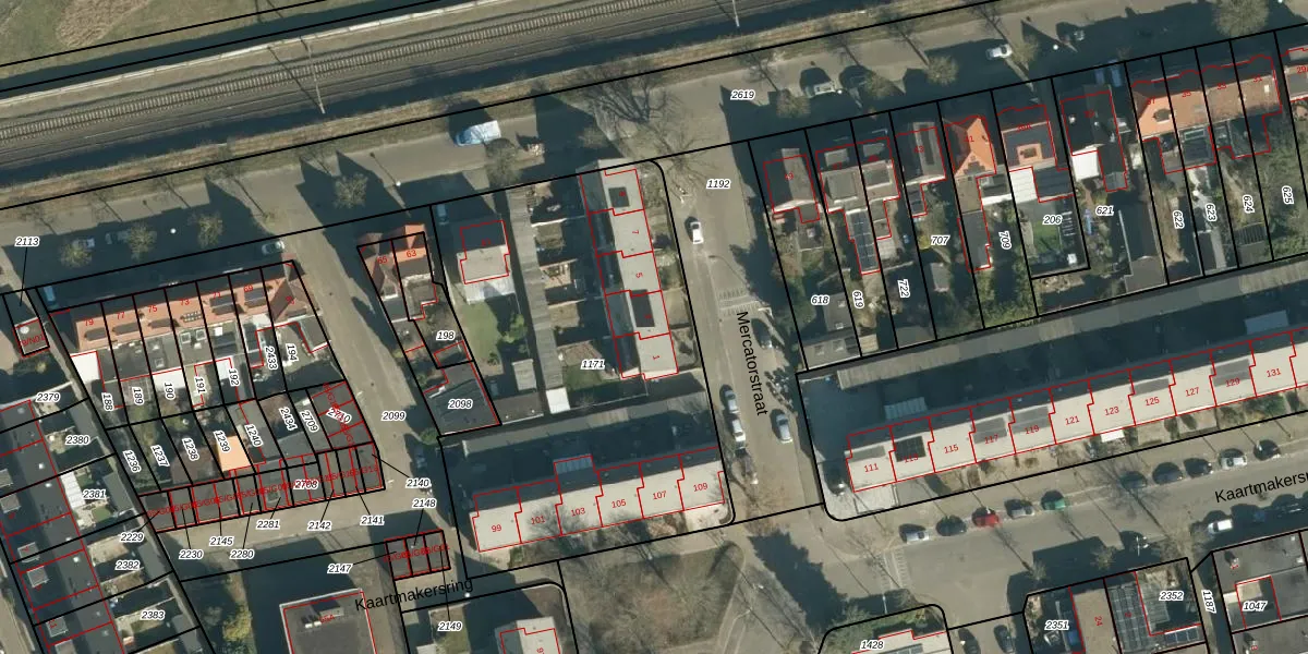 Het perceel waarop Mercatorstraat 3 staat heeft een oppervlakte van 2130 m². Dit is een zeer groot perceel. De perceeloppervlakte wordt geregistreerd door het Kadaster. Gedetailleerde informatie over de maten van dit perceel kunt u vinden in het rapport Kadastrale kaart met maatvoering van Mercatorstraat 3.