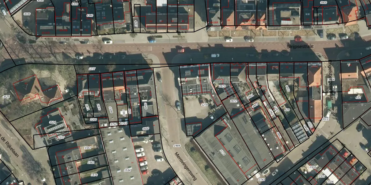 Merovingersweg 1-A is gelegen op kadastraal perceel STR03D1278. Deze kadastrale aanduiding is uniek en wordt gebruikt door het Kadaster om eigendomsrechten en andere zakelijke rechten vast te leggen. Het perceel maakt onderdeel uit van de kadastrale gemeente Strijp.