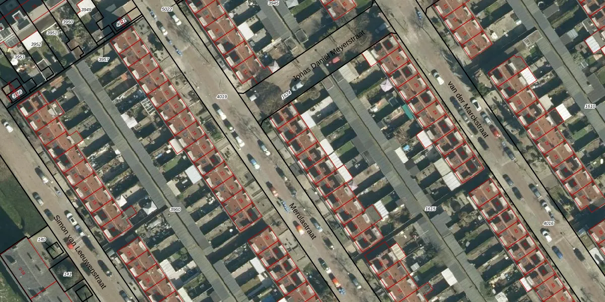 Merulastraat 17 is gelegen op kadastraal perceel STR03C1615. Deze kadastrale aanduiding is uniek en wordt gebruikt door het Kadaster om eigendomsrechten en andere zakelijke rechten vast te leggen. Het perceel maakt onderdeel uit van de kadastrale gemeente Strijp.