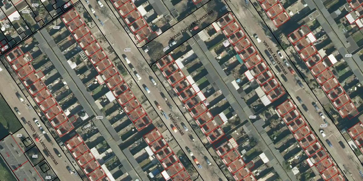 Merulastraat 19 is gelegen op kadastraal perceel STR03C1615. Deze kadastrale aanduiding is uniek en wordt gebruikt door het Kadaster om eigendomsrechten en andere zakelijke rechten vast te leggen. Het perceel maakt onderdeel uit van de kadastrale gemeente Strijp.