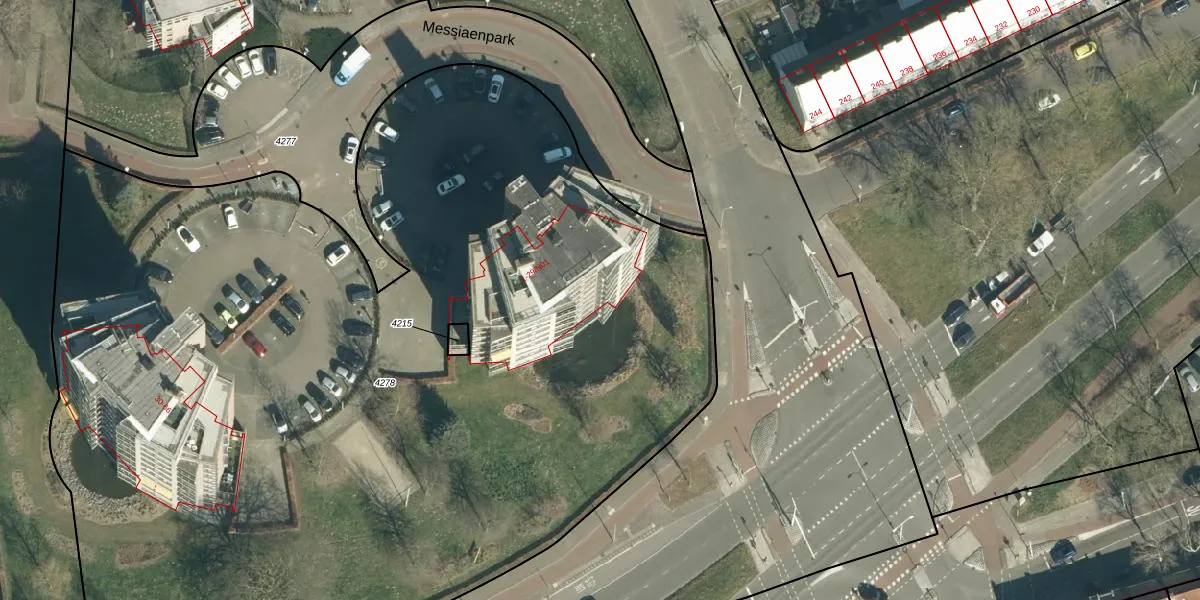 Het perceel waarop Messiaenpark 25 staat heeft een oppervlakte van 7968 m². Dit is een zeer groot perceel. De perceeloppervlakte wordt geregistreerd door het Kadaster. Gedetailleerde informatie over de maten van dit perceel kunt u vinden in het rapport Kadastrale kaart met maatvoering van Messiaenpark 25.