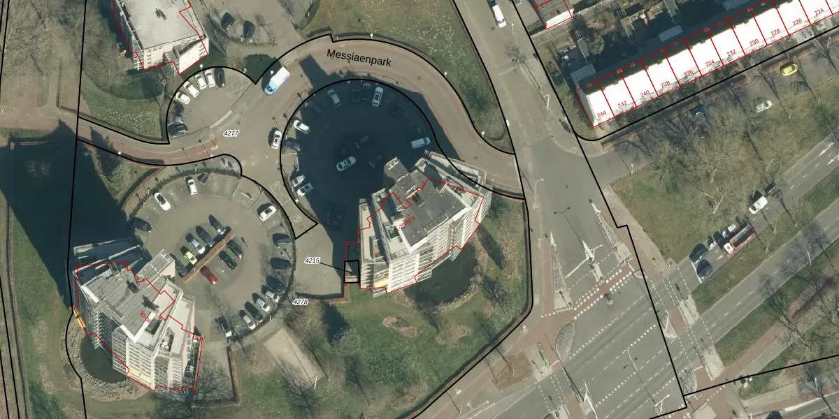 Het perceel waarop Messiaenpark 4 staat heeft een oppervlakte van 7968 m². Dit is een zeer groot perceel. De perceeloppervlakte wordt geregistreerd door het Kadaster. Gedetailleerde informatie over de maten van dit perceel kunt u vinden in het rapport Kadastrale kaart met maatvoering van Messiaenpark 4.