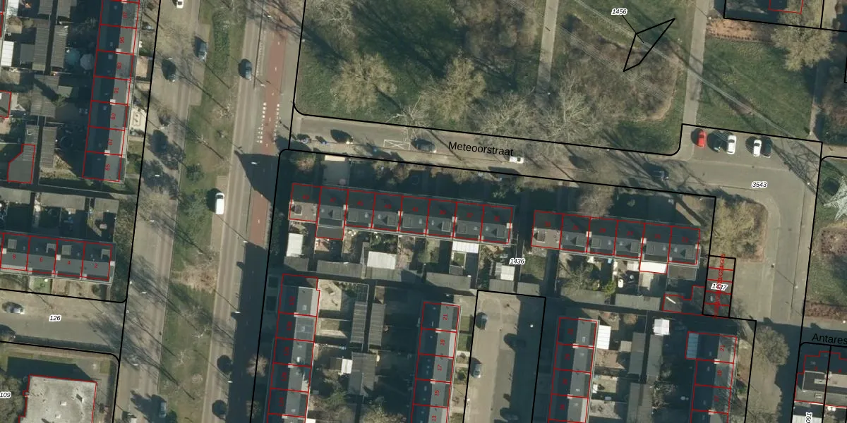 Het perceel waarop Meteoorstraat 41 staat heeft een oppervlakte van 1,0 ha. Dit is een zeer groot perceel. De perceeloppervlakte wordt geregistreerd door het Kadaster. Gedetailleerde informatie over de maten van dit perceel kunt u vinden in het rapport Kadastrale kaart met maatvoering van Meteoorstraat 41.