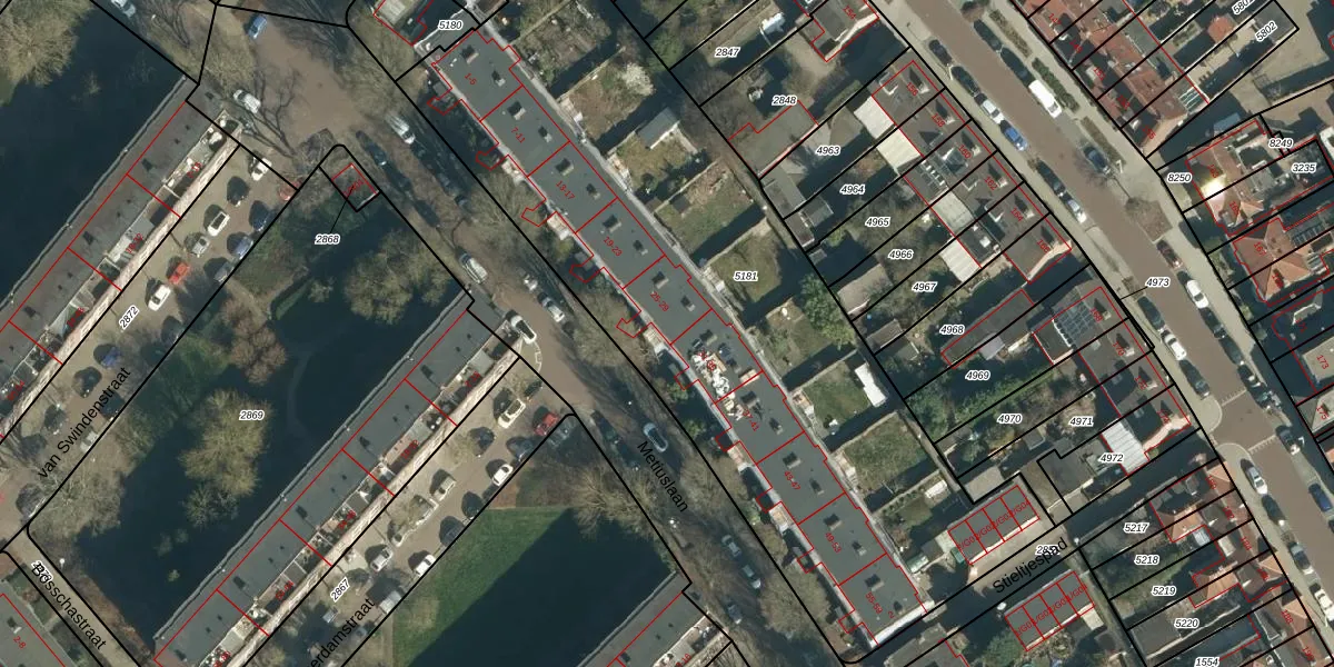 Metiuslaan 25 is gelegen op kadastraal perceel WSL01G5181. Deze kadastrale aanduiding is uniek en wordt gebruikt door het Kadaster om eigendomsrechten en andere zakelijke rechten vast te leggen. Het perceel maakt onderdeel uit van de kadastrale gemeente Woensel.