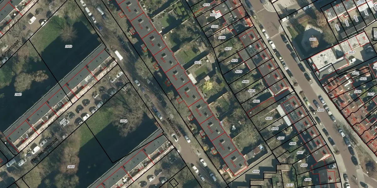 Het perceel waarop Metiuslaan 97 staat heeft een oppervlakte van 4093 m². Dit is een zeer groot perceel. De perceeloppervlakte wordt geregistreerd door het Kadaster. Gedetailleerde informatie over de maten van dit perceel kunt u vinden in het rapport Kadastrale kaart met maatvoering van Metiuslaan 97.