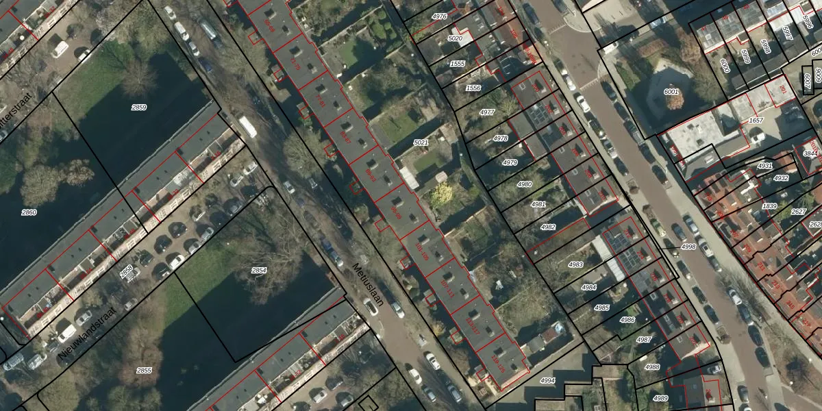 Het perceel waarop Metiuslaan 99 staat heeft een oppervlakte van 4093 m². Dit is een zeer groot perceel. De perceeloppervlakte wordt geregistreerd door het Kadaster. Gedetailleerde informatie over de maten van dit perceel kunt u vinden in het rapport Kadastrale kaart met maatvoering van Metiuslaan 99.
