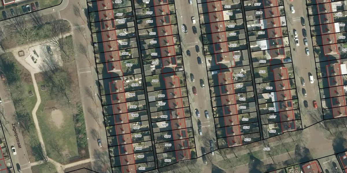 Gebruik de zoekbalk of klik op een perceel voor informatie over de adressen binnen dit perceel.