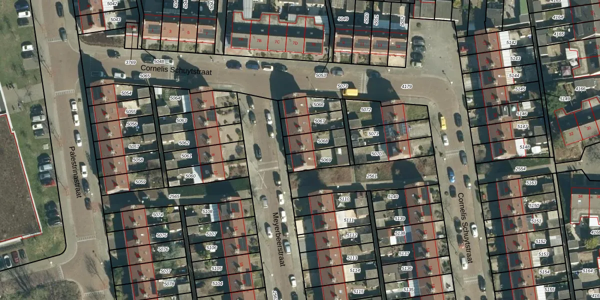Het perceel waarop Meyerbeerstraat 5 staat heeft een oppervlakte van 128 m². Dit is een middelgroot perceel. De perceeloppervlakte wordt geregistreerd door het Kadaster. Gedetailleerde informatie over de maten van dit perceel kunt u vinden in het rapport Kadastrale kaart met maatvoering van Meyerbeerstraat 5.