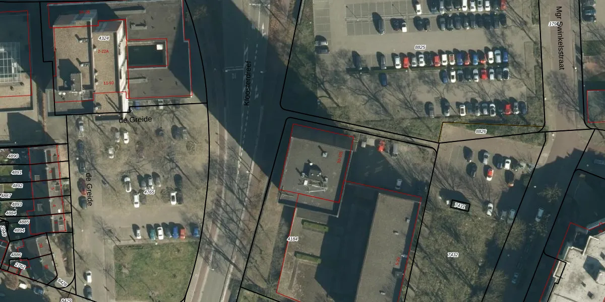 Mgr Swinkelsstraat 43 is gelegen op kadastraal perceel WSL01G4184. Deze kadastrale aanduiding is uniek en wordt gebruikt door het Kadaster om eigendomsrechten en andere zakelijke rechten vast te leggen. Het perceel maakt onderdeel uit van de kadastrale gemeente Woensel.