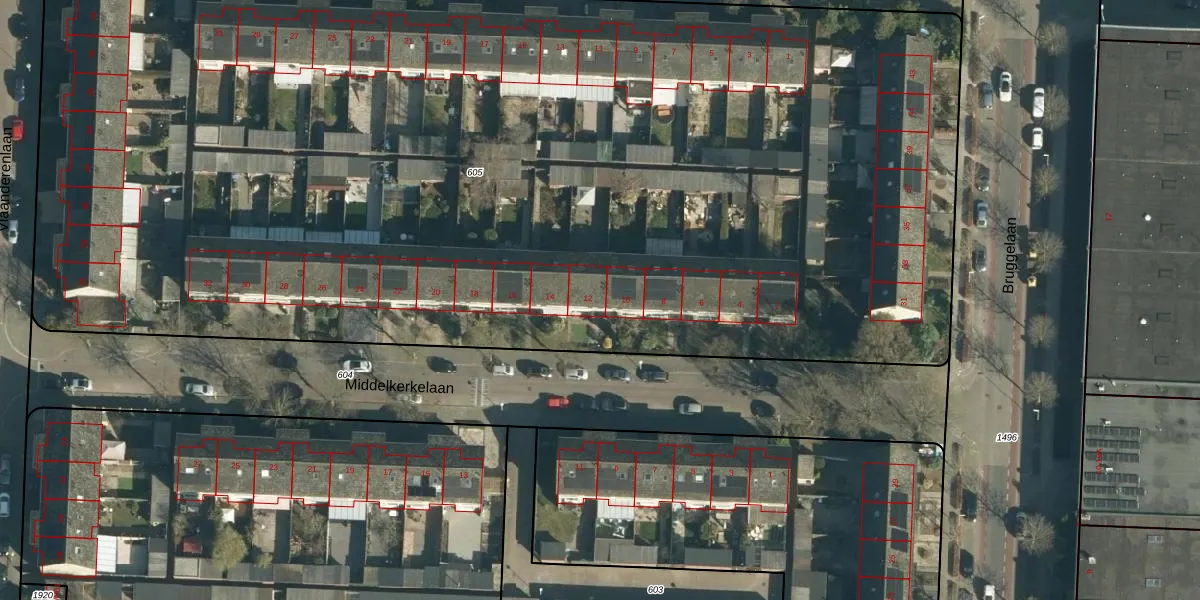 Het perceel waarop Middelkerkelaan 12 staat heeft een oppervlakte van 9005 m². Dit is een zeer groot perceel. De perceeloppervlakte wordt geregistreerd door het Kadaster. Gedetailleerde informatie over de maten van dit perceel kunt u vinden in het rapport Kadastrale kaart met maatvoering van Middelkerkelaan 12.