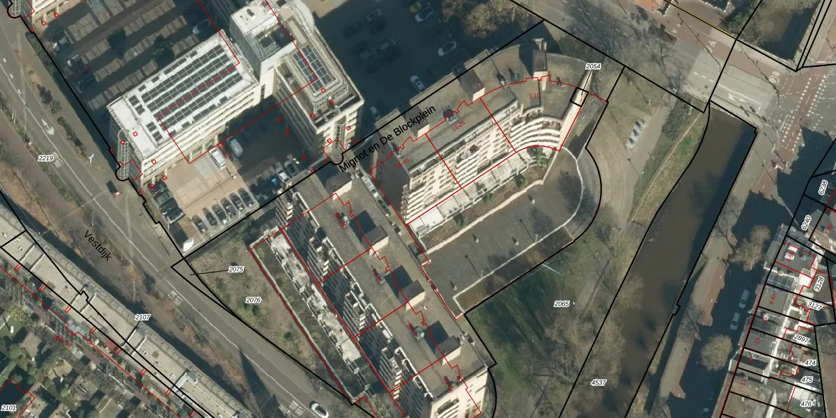 Het perceel waarop Mignot en De Blockplein 40 staat heeft een oppervlakte van 5325 m². Dit is een zeer groot perceel. De perceeloppervlakte wordt geregistreerd door het Kadaster. Gedetailleerde informatie over de maten van dit perceel kunt u vinden in het rapport Kadastrale kaart met maatvoering van Mignot en De Blockplein 40.