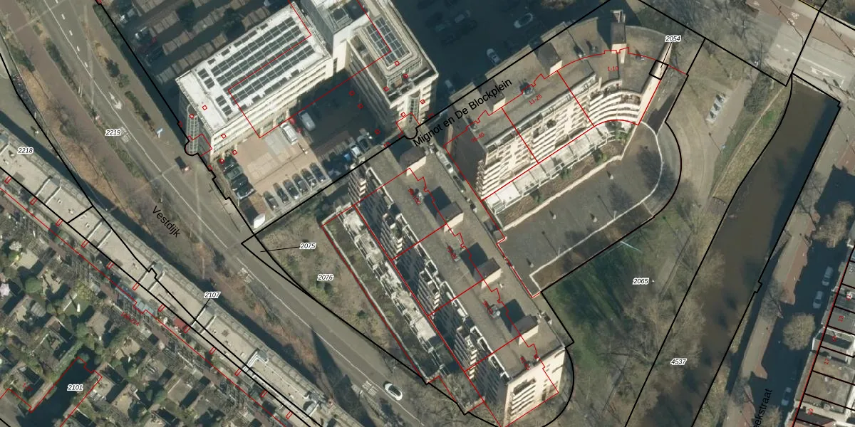 Het perceel waarop Mignot en De Blockplein 87 staat heeft een oppervlakte van 5325 m². Dit is een zeer groot perceel. De perceeloppervlakte wordt geregistreerd door het Kadaster. Gedetailleerde informatie over de maten van dit perceel kunt u vinden in het rapport Kadastrale kaart met maatvoering van Mignot en De Blockplein 87.