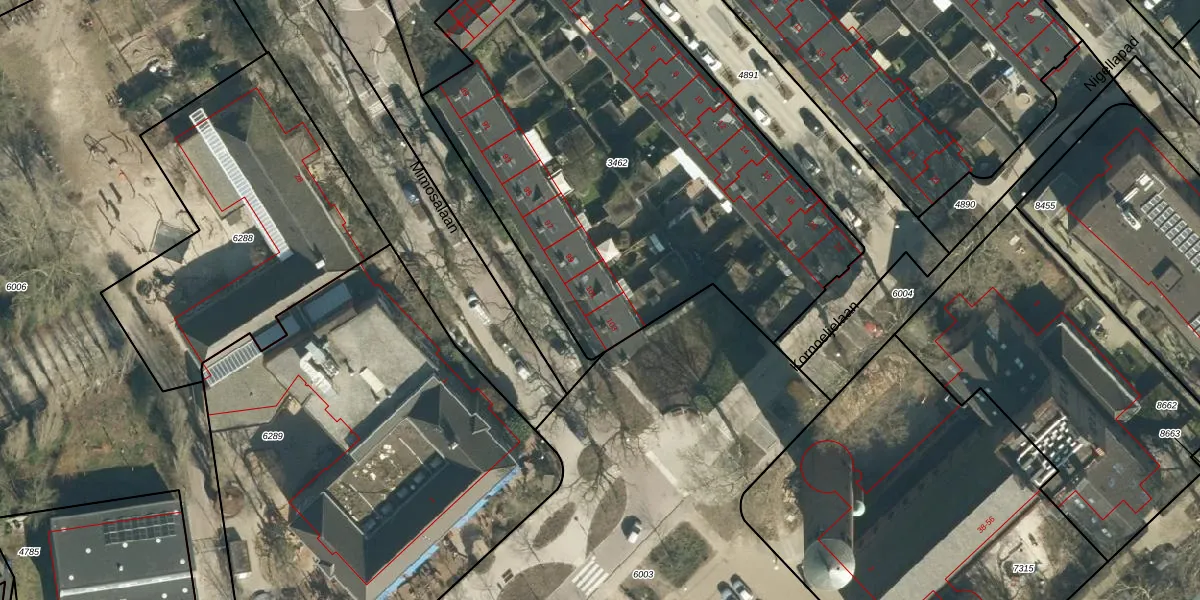 Het perceel waarop Mimosalaan 101 staat heeft een oppervlakte van 2825 m². Dit is een zeer groot perceel. De perceeloppervlakte wordt geregistreerd door het Kadaster. Gedetailleerde informatie over de maten van dit perceel kunt u vinden in het rapport Kadastrale kaart met maatvoering van Mimosalaan 101.
