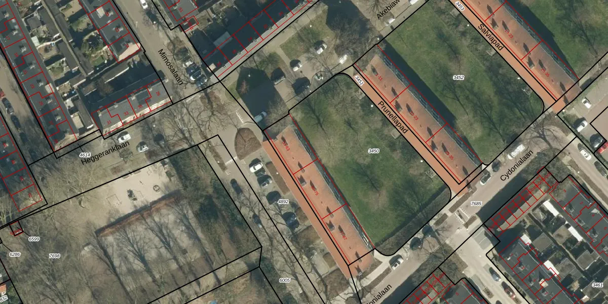 Het perceel waarop Mimosalaan 63 staat heeft een oppervlakte van 2120 m². Dit is een zeer groot perceel. De perceeloppervlakte wordt geregistreerd door het Kadaster. Gedetailleerde informatie over de maten van dit perceel kunt u vinden in het rapport Kadastrale kaart met maatvoering van Mimosalaan 63.
