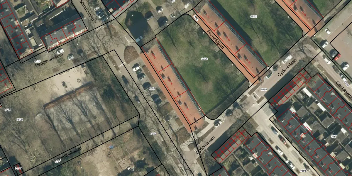 Mimosalaan 71 is gelegen op kadastraal perceel STM00D3450. Deze kadastrale aanduiding is uniek en wordt gebruikt door het Kadaster om eigendomsrechten en andere zakelijke rechten vast te leggen. Het perceel maakt onderdeel uit van de kadastrale gemeente Stratum.