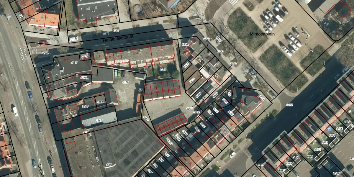 Het perceel waarop Mimosaplein 2-G13 staat heeft een oppervlakte van 1537 m². Dit is een zeer groot perceel. De perceeloppervlakte wordt geregistreerd door het Kadaster. Gedetailleerde informatie over de maten van dit perceel kunt u vinden in het rapport Kadastrale kaart met maatvoering van Mimosaplein 2-G13.