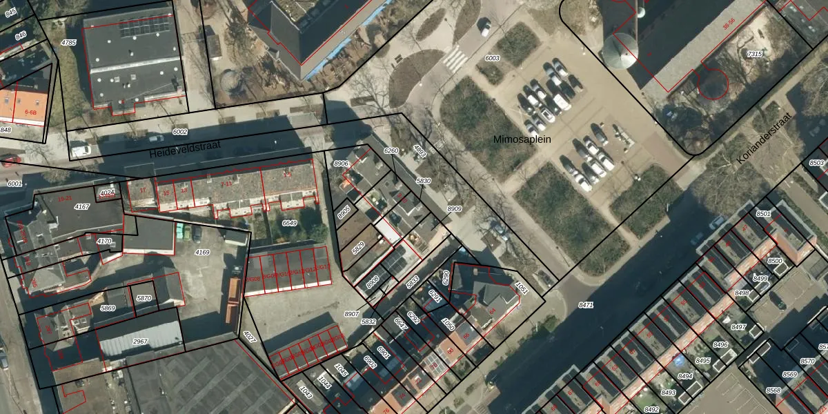 Het perceel waarop Mimosaplein 6 staat heeft een oppervlakte van 145 m². Dit is een middelgroot perceel. De perceeloppervlakte wordt geregistreerd door het Kadaster. Gedetailleerde informatie over de maten van dit perceel kunt u vinden in het rapport Kadastrale kaart met maatvoering van Mimosaplein 6.
