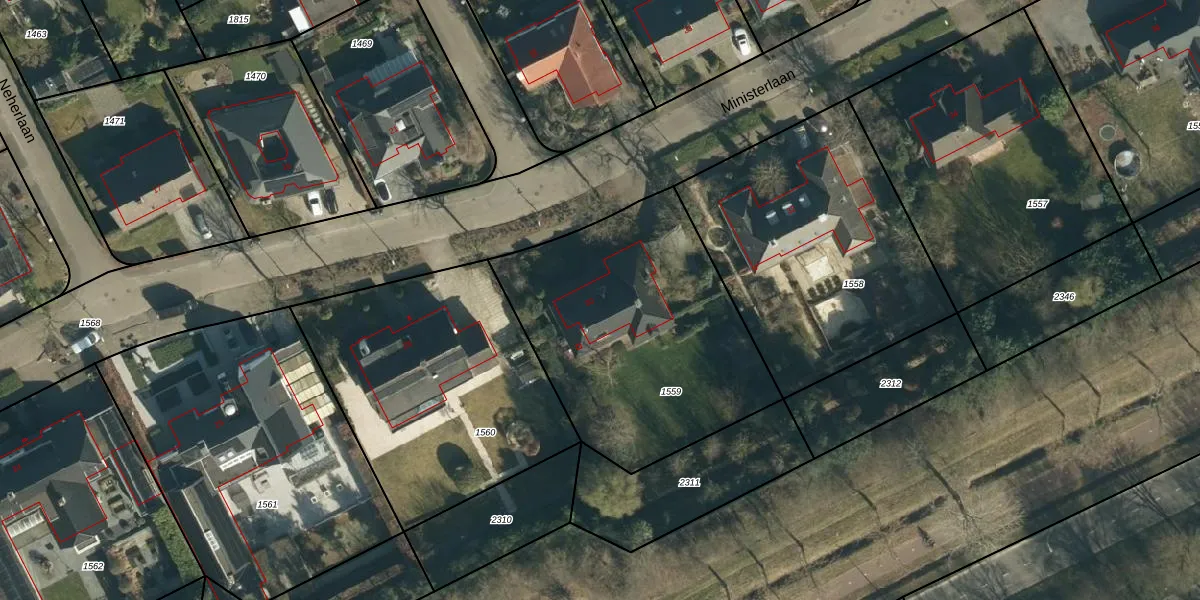 Het perceel waarop Ministerlaan 30 staat heeft een oppervlakte van 1319 m². Dit is een zeer groot perceel. De perceeloppervlakte wordt geregistreerd door het Kadaster. Gedetailleerde informatie over de maten van dit perceel kunt u vinden in het rapport Kadastrale kaart met maatvoering van Ministerlaan 30.