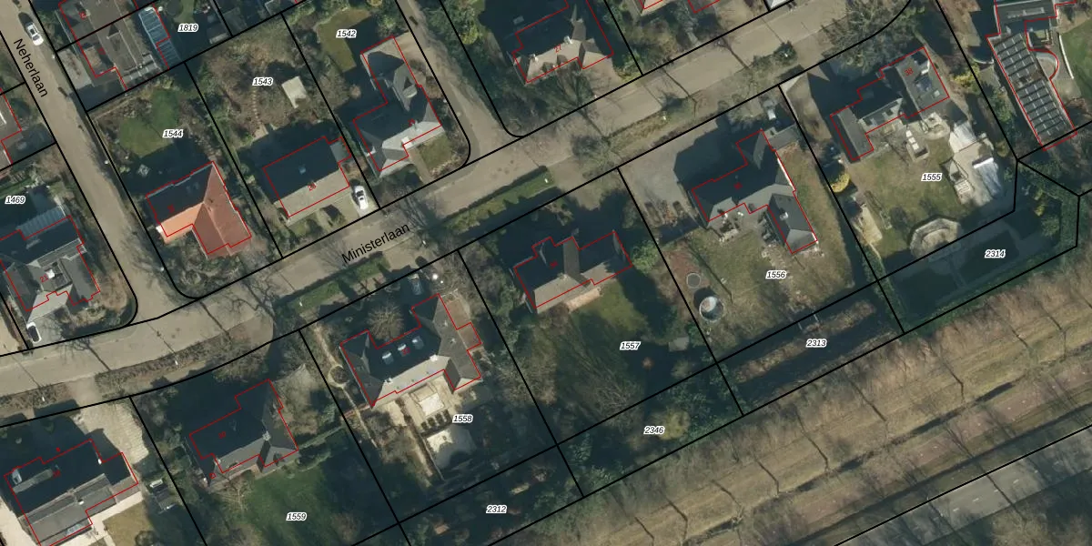Het perceel waarop Ministerlaan 34 staat heeft een oppervlakte van 1320 m². Dit is een zeer groot perceel. De perceeloppervlakte wordt geregistreerd door het Kadaster. Gedetailleerde informatie over de maten van dit perceel kunt u vinden in het rapport Kadastrale kaart met maatvoering van Ministerlaan 34.