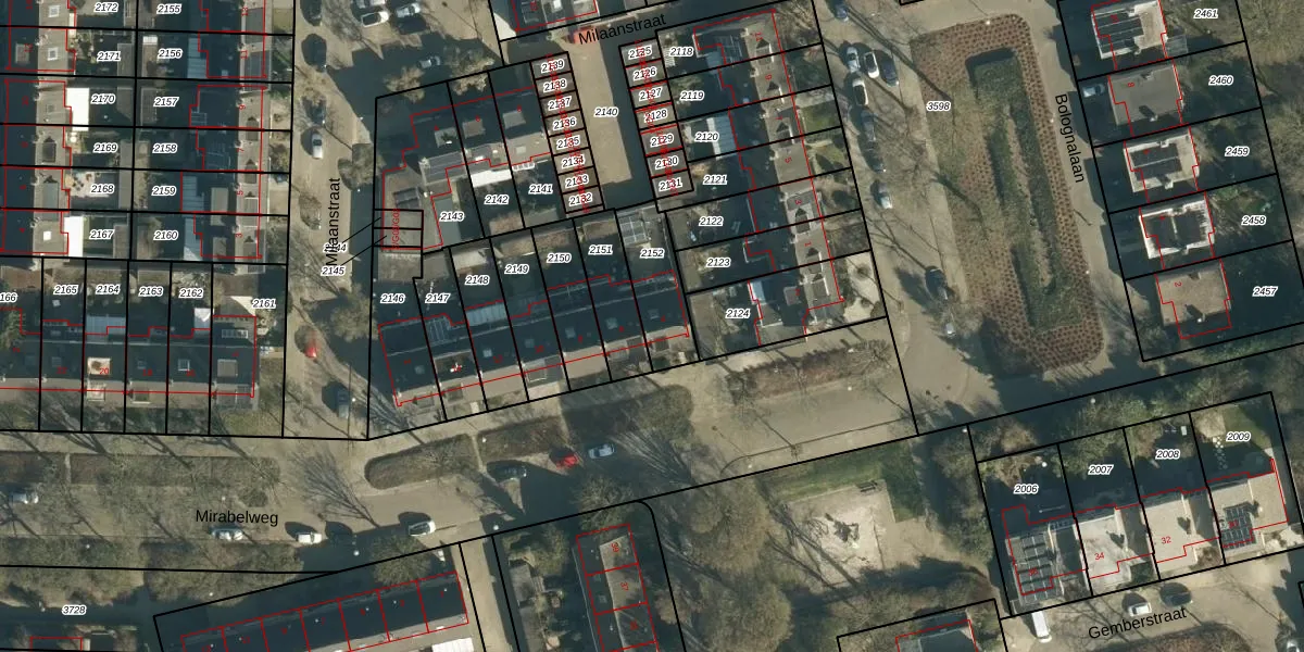 Gebruik de zoekbalk of klik op een perceel voor informatie over de adressen binnen dit perceel.