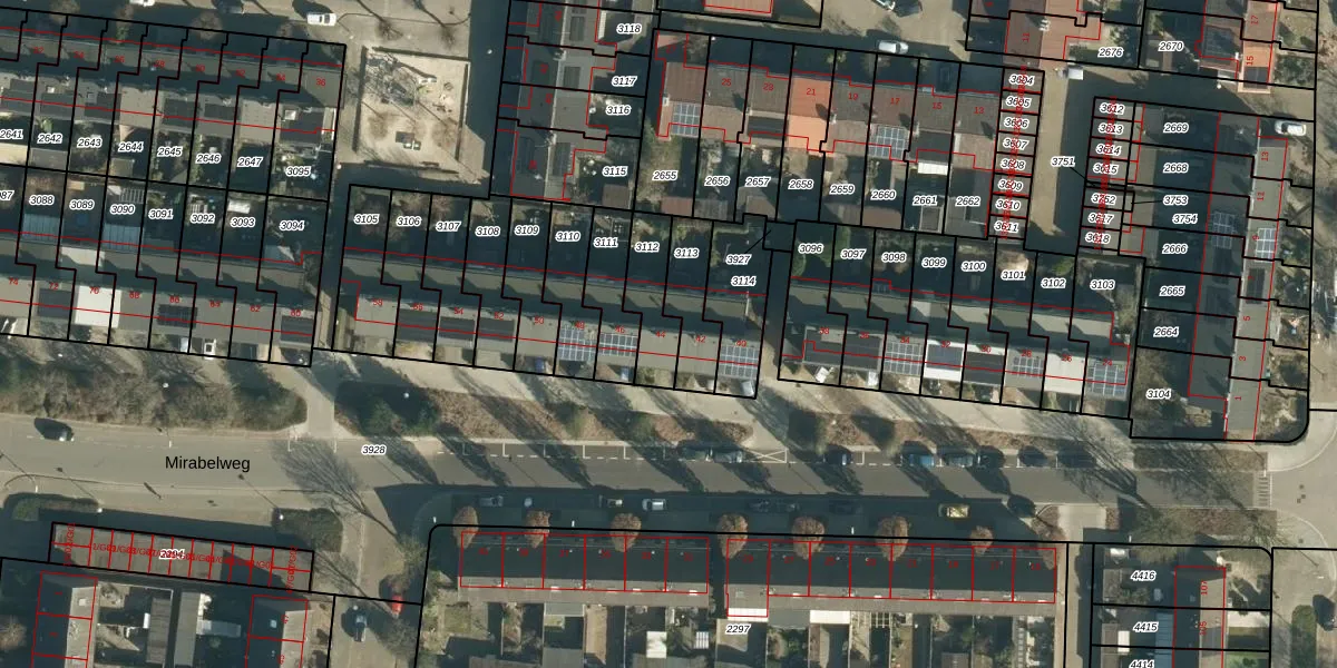 Mirabelweg 44 is gelegen op kadastraal perceel WSL01C3112. Deze kadastrale aanduiding is uniek en wordt gebruikt door het Kadaster om eigendomsrechten en andere zakelijke rechten vast te leggen. Het perceel maakt onderdeel uit van de kadastrale gemeente Woensel.