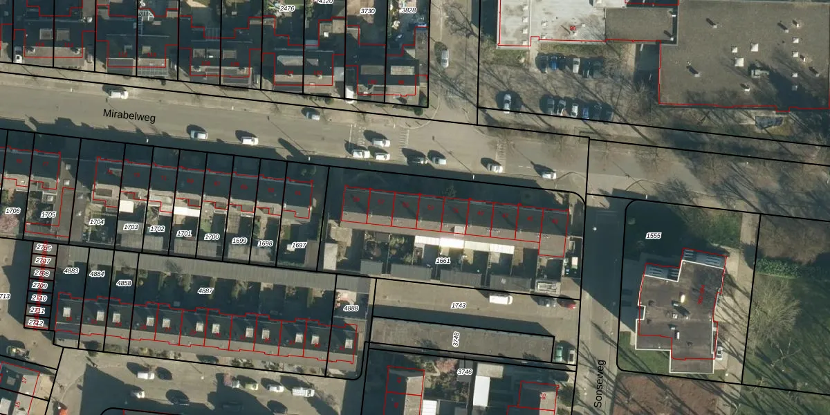 Mirabelweg 55 is gelegen op kadastraal perceel WSL01C1661. Deze kadastrale aanduiding is uniek en wordt gebruikt door het Kadaster om eigendomsrechten en andere zakelijke rechten vast te leggen. Het perceel maakt onderdeel uit van de kadastrale gemeente Woensel.