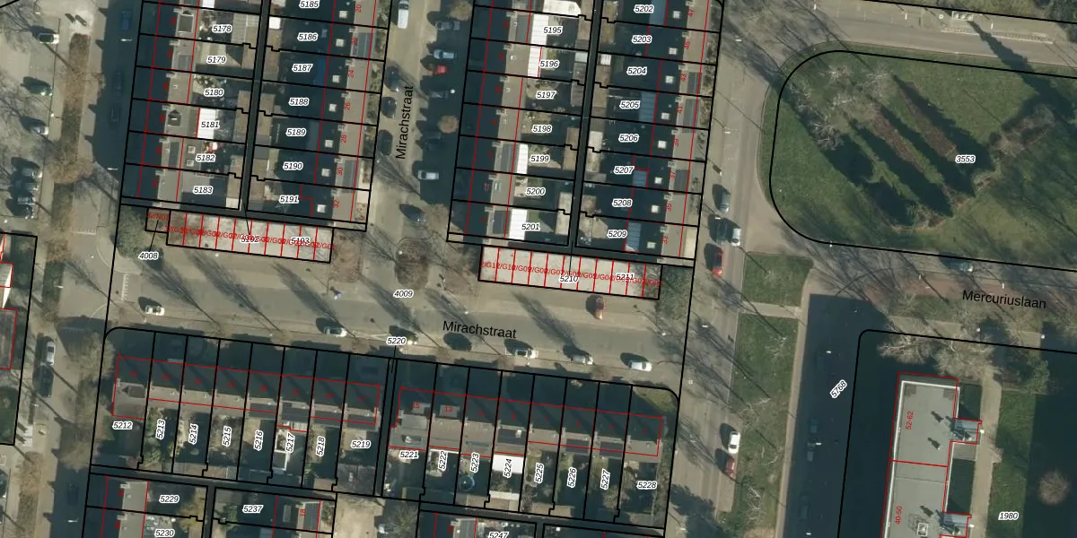 Mirachstraat 2-G08 is gelegen op kadastraal perceel WSL01L5211. Deze kadastrale aanduiding is uniek en wordt gebruikt door het Kadaster om eigendomsrechten en andere zakelijke rechten vast te leggen. Het perceel maakt onderdeel uit van de kadastrale gemeente Woensel.